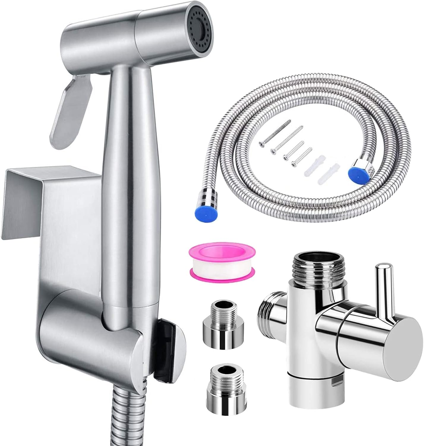 YIBEWANL Handheld Bidet Sprayer, Stainless Steel Toilet Bidet Shower Spray, Shattaf Douche Shower for Toilet, Bidet Shower with T-Valve Adapter and Hose for Personal Hygiene