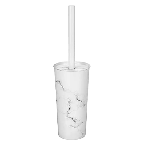 mDesign Stainless Steel Toilet Bowl Brush and Holder Set, Modern Metal Compact Storage Organizer Cleaner Scrubber for Toilet - Heavy Duty Cleaning Plunger for Bathroom, Mirri Collection, White Marble