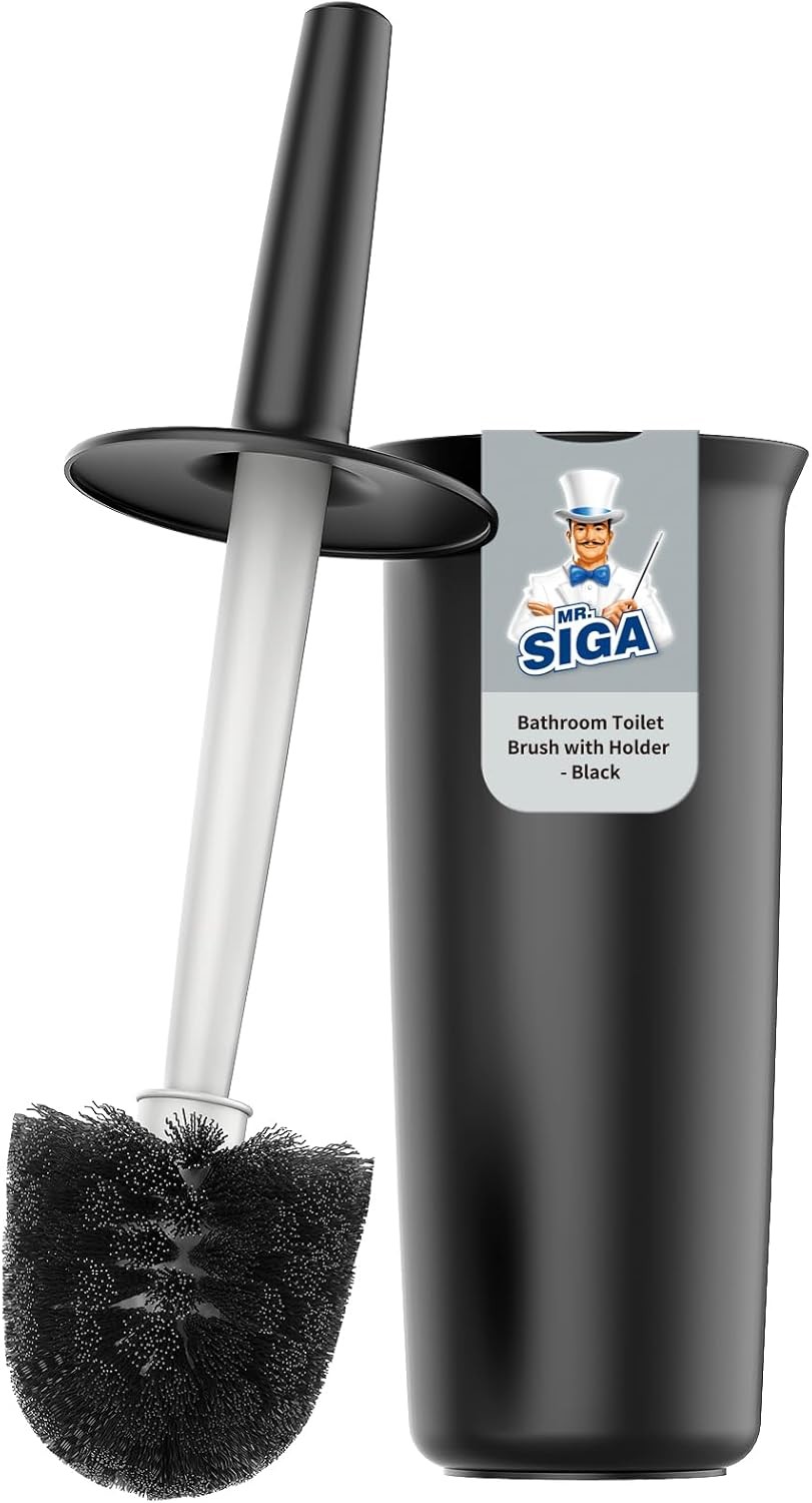MR.SIGA Toilet Bowl Brush and Holder, Premium Quality, with Solid Handle and Durable Bristles for Bathroom Cleaning, Black, 1 Pack