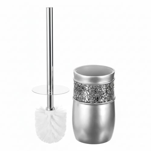Creative Scents Toilet Brush and Holder Set - Silver Mosaic Toilet Bowl Brush and Holder, Toilet Cleaner Brush with Sturdy Stainless Steel Handle, Bathroom Toilet Scrubber Brush with Decorative Holder
