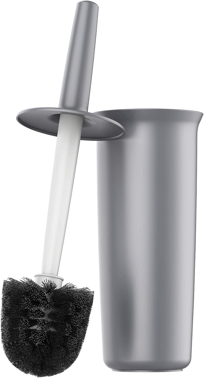 Toilet Brush, Toilet Bowl Brush and Holder Set for Bathroom, Toilet Cleaning Scrubber Brush for Bathroom for Deep Cleaning with Stiff Plastic Bristle, Ventilated Holder, Wall Mount Hook (Grey)