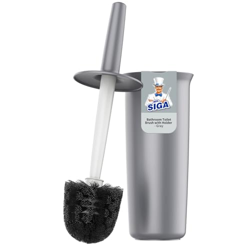 MR.SIGA Toilet Bowl Brush and Holder, Premium Quality, with Solid Handle and Durable Bristles for Bathroom Cleaning, Gray, 1 Pack