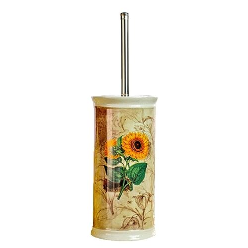 Bathroom Sunflower Toilet Brush and Holder Ceramics Toilet Brush Set Bathroom Wc Toilet Cleaning Brushes w/Stainless Steel Long Handle Toilet Bowl Scrubber