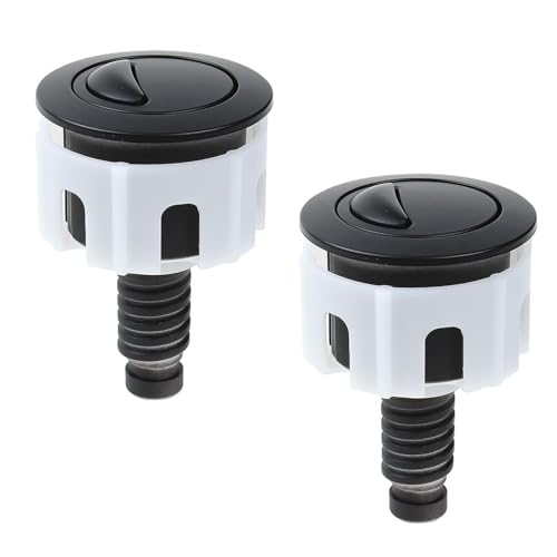 2 PCS Toilet Flush Button, Black Round Head Dual Toilet Push Button Flush Parts Replacement Universal WC Flusher Valve Accessories Compatible with Cistern Tank Toilet Flush System