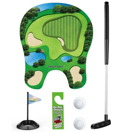 Otbushit 1 Set Toilet Golf Practice Game Includes Putter Balls Putting Green Funny Mini Golf for Kids Men Dad Boyfriend Any Restroom