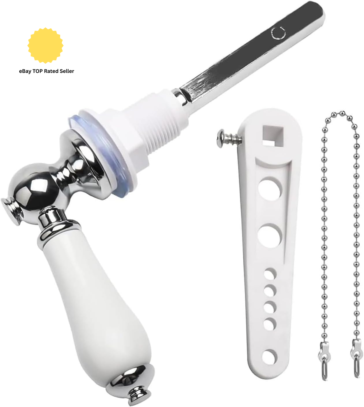 Ceramic Toilet Flush Handle, Replacement Universal Fit Cistern Chrome Plated Rep