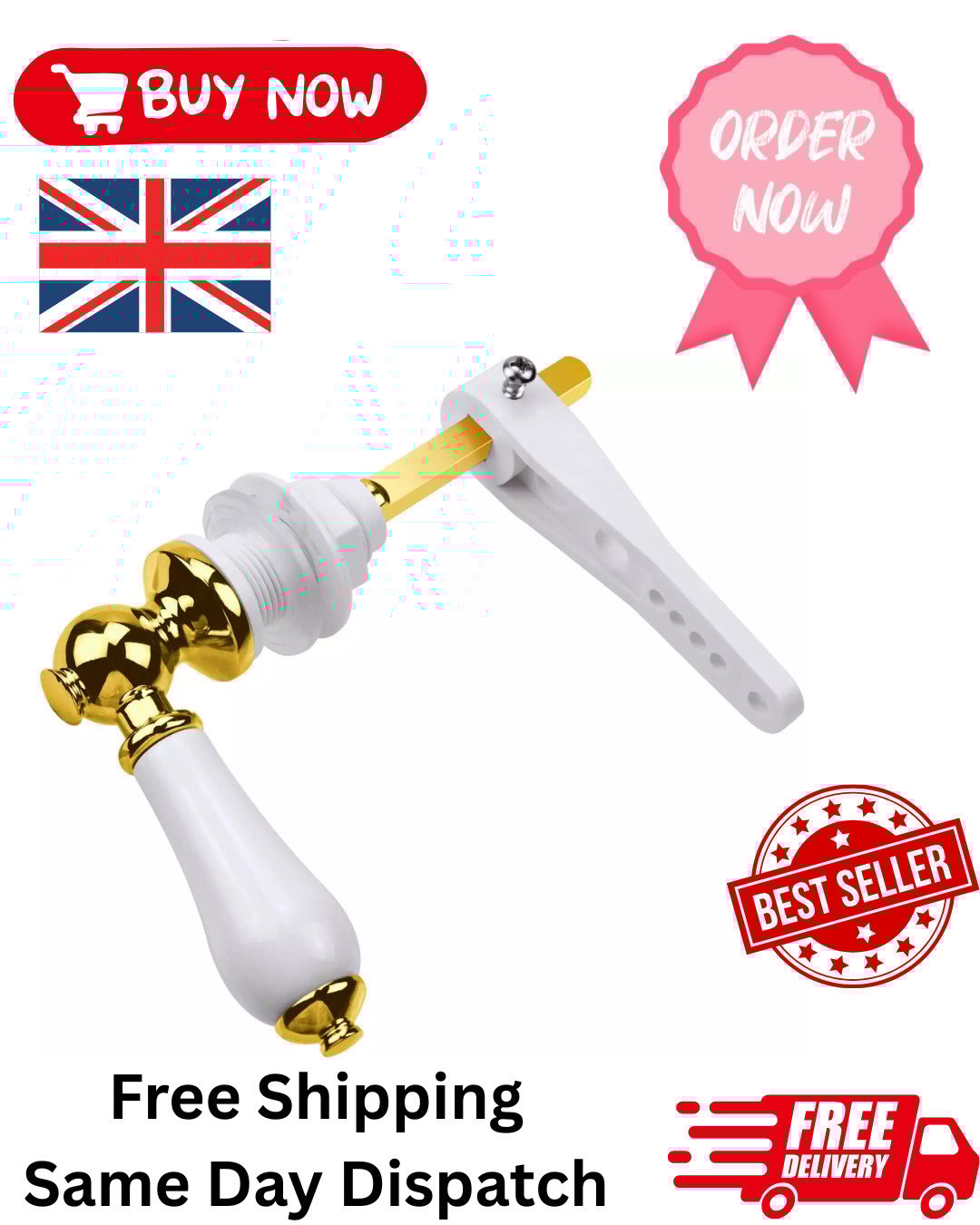 Fantasyon Ceramic Toilet Flush Handle Replacement Brass Finish Universal Fit UK