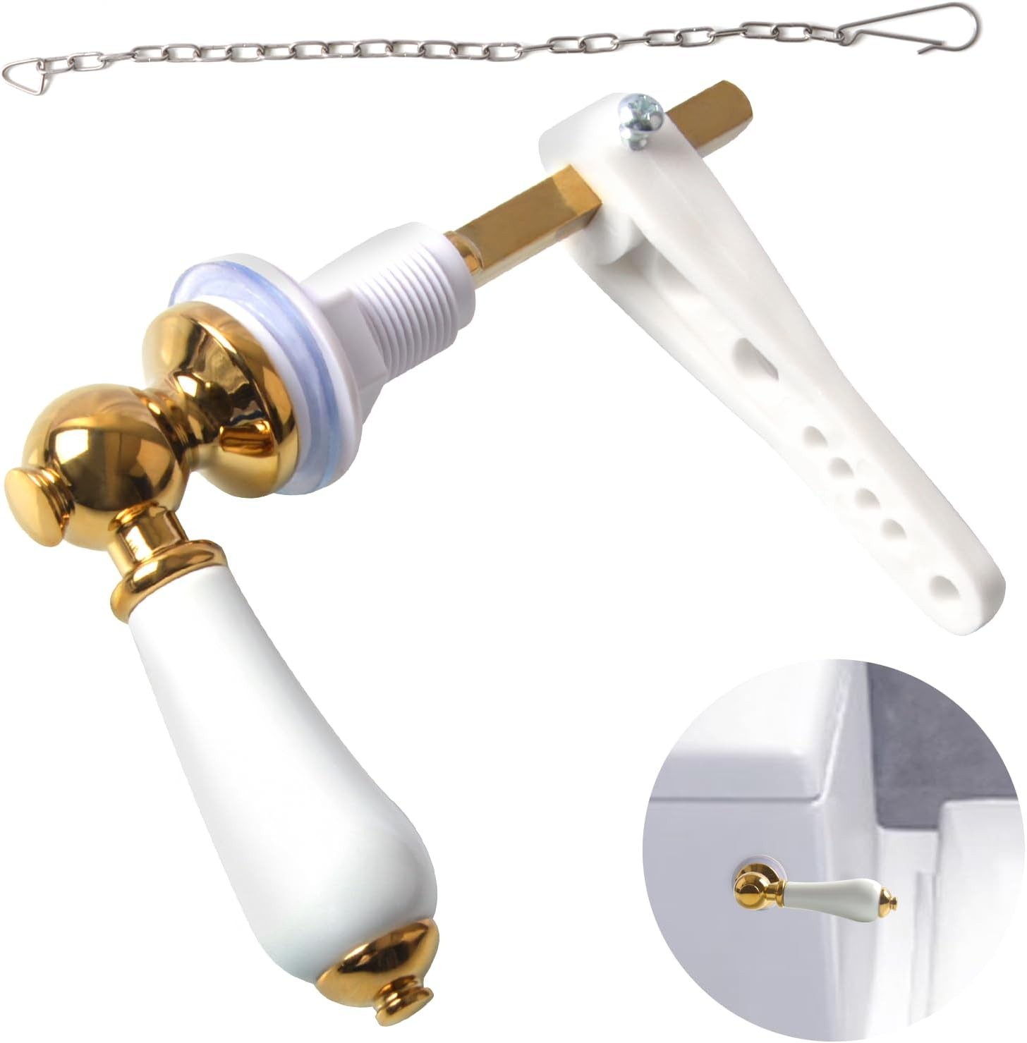 Ceramic Toilet Flush Handle Replacement, Brass Finish Universal Fit Toilet Ciste