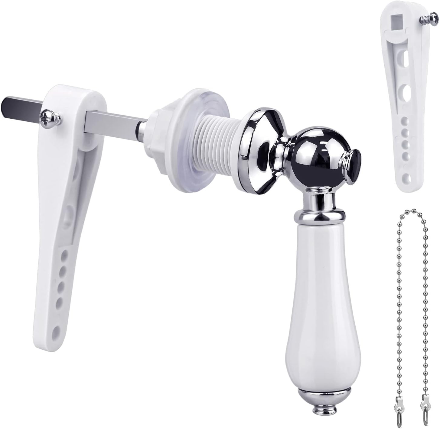 Ceramic Toilet Flush, Toilet Handles Flush Lever Traditional Victorian Style Toilet Handle Replacement Kit Chrome Plated Metal Handle for Toilet WC Cistern Flush Lever (White)