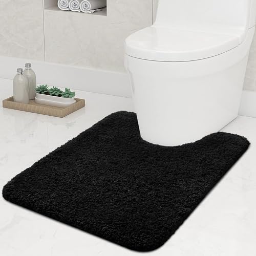 smiry U-Shape Toilet Mat, Extra Soft Pedestal Mat for Toilet, Absorbent Microfiber Toilet Bathroom Mats, 50 x 60 cm, Black