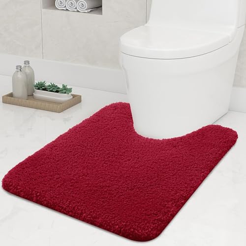 smiry U-Shape Toilet Mat, Extra Soft Pedestal Mat for Toilet, Absorbent Microfiber Toilet Bathroom Mats, 50 x 60 cm, Wine Red