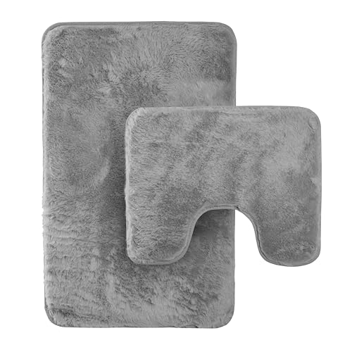 smiry Microfiber Non-Slip Toilet Mats for Bathroom, Extra Soft Absorbent Toilet Mats Rugs, Machine Washable Quick Dry Floor Mat, 50 x 60 cm, Grey