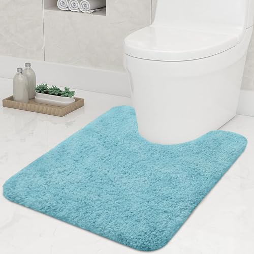 smiry U-Shape Toilet Mat, Extra Soft Pedestal Mat for Toilet, Absorbent Microfiber Toilet Bathroom Mats, 50 x 60 cm, Spa Blue