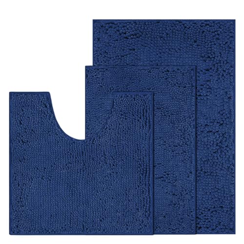 RUN HELIX Bathroom Mats Sets 3 Piece, Soft Absorbent Chenille Bath Mats, Non-Slip Bath Rugs, U-Shaped Toilet Mats, Home Decor Accessories, Bath Mat Set for Bathroom, Black