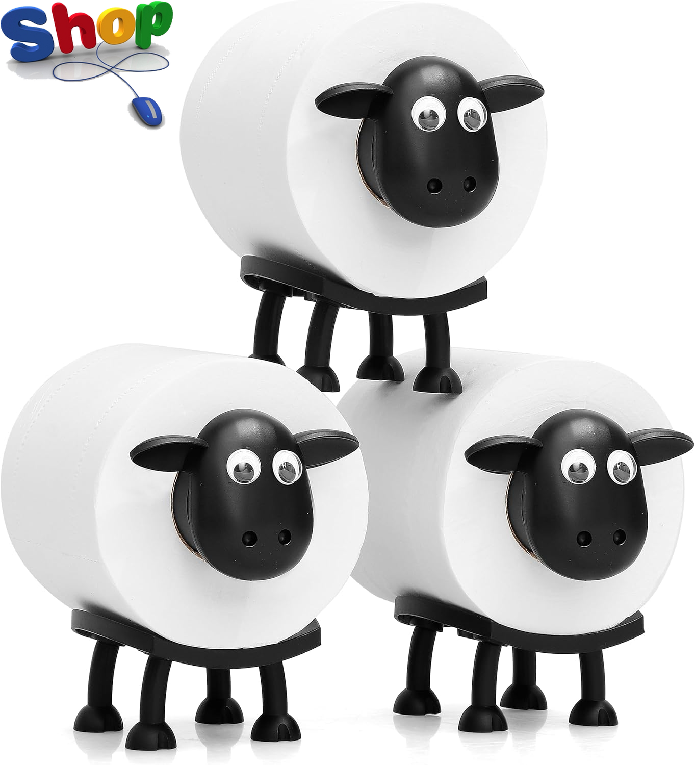 Sheep Toilet Roll Holder - Funny Toilet Paper Holder Free Standing Bathroom Set - 3D Printed Black Sheep Loo Roll Holder - Hilarious Tissue Paper Roll Storage - Cute Bathroom Decor - Set of 3