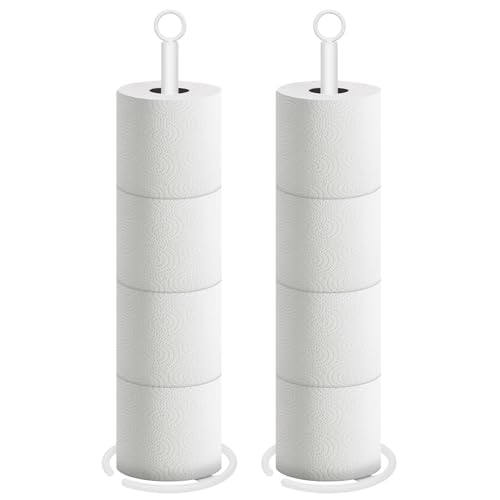 NearMoon Bath Toilet Paper Holder Stand, Free Standing Tissue Paper Storage with Reserve, Space Toilet 4 Rolls Holder for Bathroom/Kitchen Countertop-All Metal (2 Pack, White)