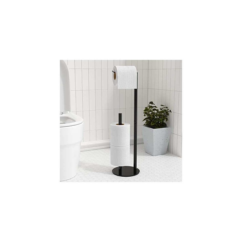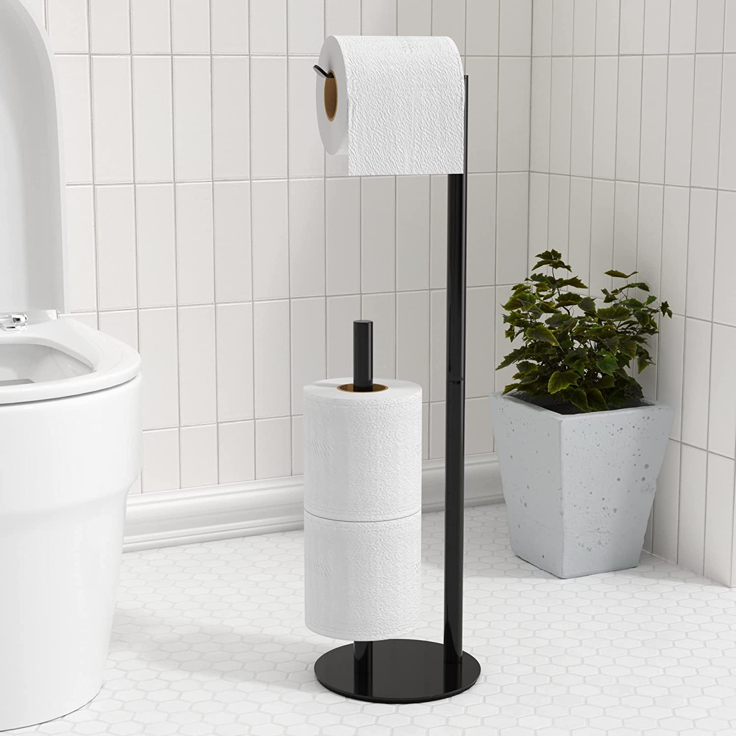 Toilet Paper Holder Stand - Free Standing Bathroom Toilet Paper Holder with Black Finish Tissue and Roll Storage Organizer
