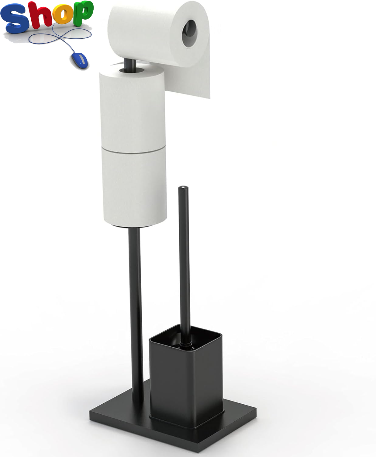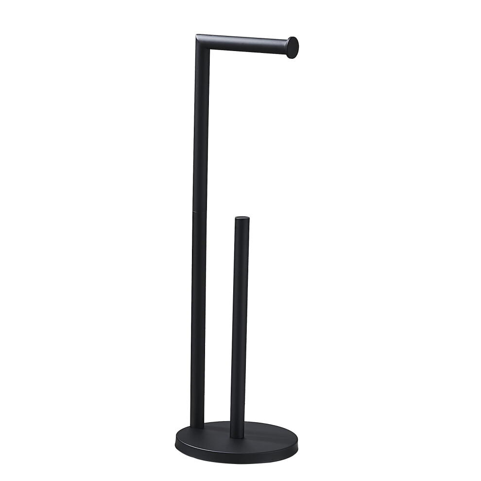 2 in 1 Toilet Paper Holder Black Bathroom Free Standing Tissue Roll Storage Rack