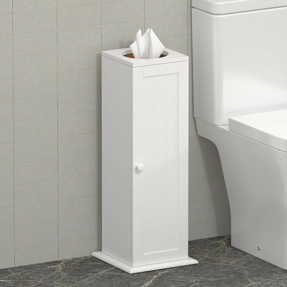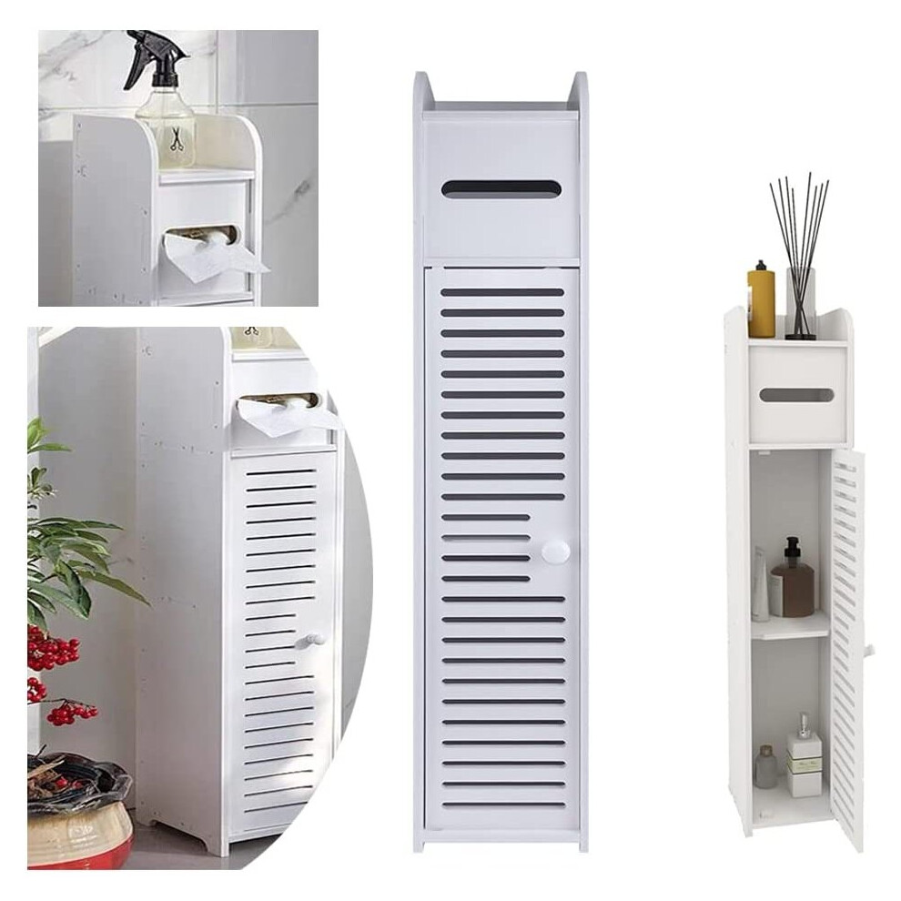 Brista Bathroom Storage Cabinet, Slimline Wooden Design, Toilet Paper Holder, Free Standing (White)