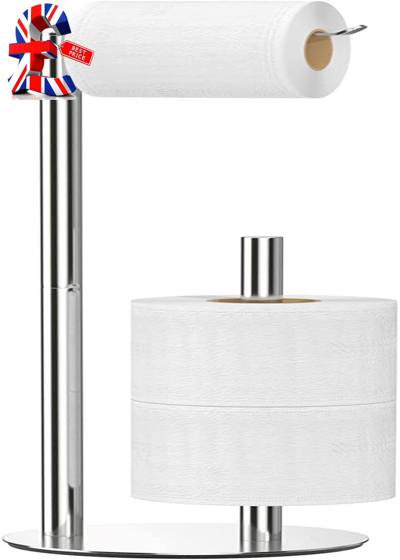 2 in 1 Toilet Roll Paper Holder Bathroom Free Standing Tissue Roll Storage Rack