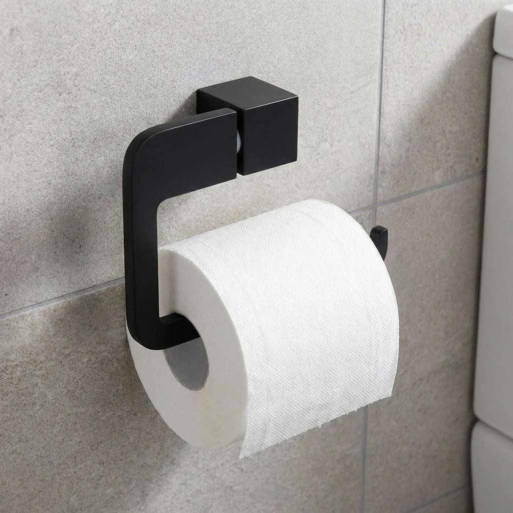 Square Black Toilet Roll Holder In Black - Bathroom Accessory