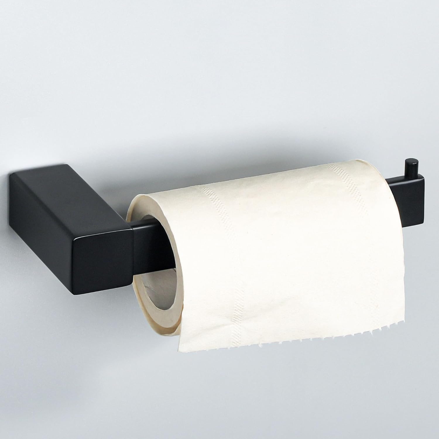 HITSLAM Toilet Roll Holder Matte Black Wall Mounted Premium 304 Stainless Steel Toilet Paper Holder for Bathroom Rustproof Square