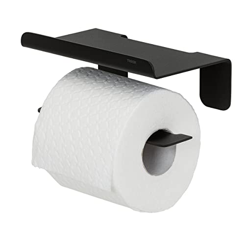 Tiger Noon Toilet Roll Holder with Shelf, Black, 15 x 8.5 x 9.5 cm