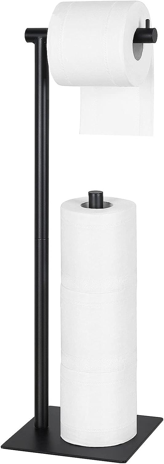 Freestanding Toilet Roll Holders for Bathroom Toilet Roll Storage, Stainless Steel Toilet Roll Holder Stand with Black Finish, Simple and Practical Toilet Roll Storage Dispenser
