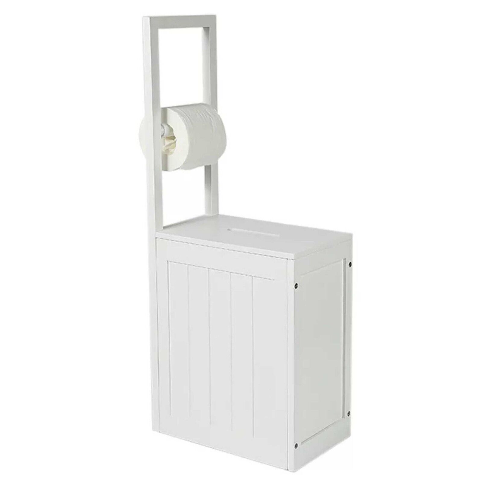 Wooden Toilet Roll Holder White Freestanding Bath Organiser With Storage Cabinet