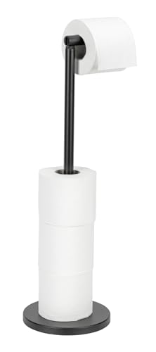 WENKO Stand Toilet Roll Holder, Freestanding Toilet Paper Holder in Minimalist Design with Space for up to 4 Spare Rolls, Space-Saving, Made of Painted Steel, 21 x 55 x 17 cm, Black