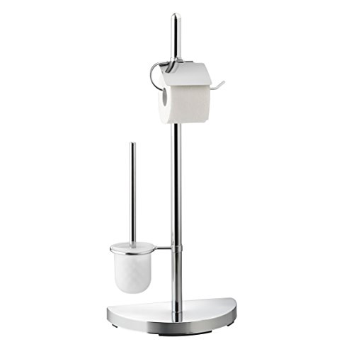 axentia Toilet Paper Stand Lianos - Toilet Brush and Holder Set - Toilet Roll Holder Freestanding - Toilet Paper Roll Stand Chrome - Contemporary Toilet Paper Holder