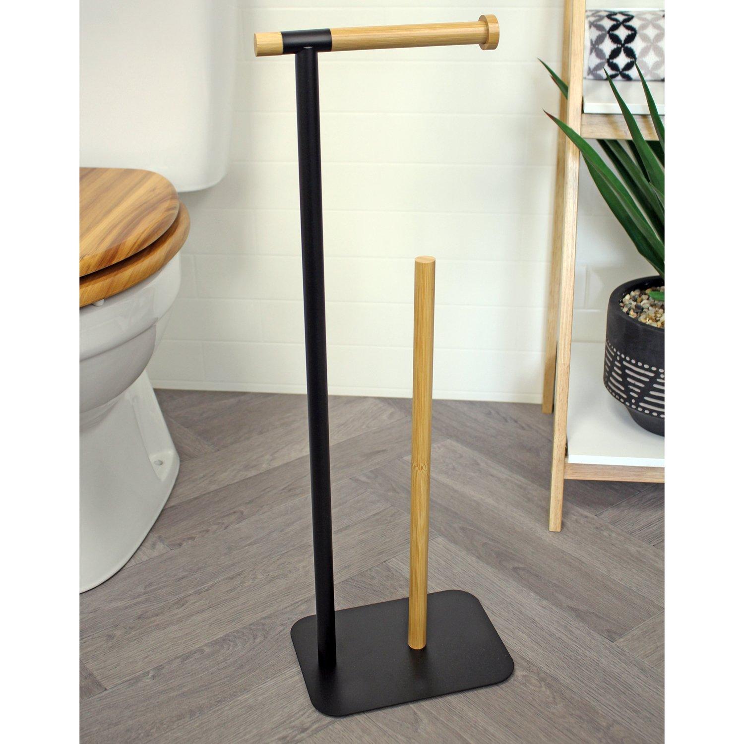 Black Toilet Roll Holder | Free-Standing Tall Black Steel Toilet Paper Holder |