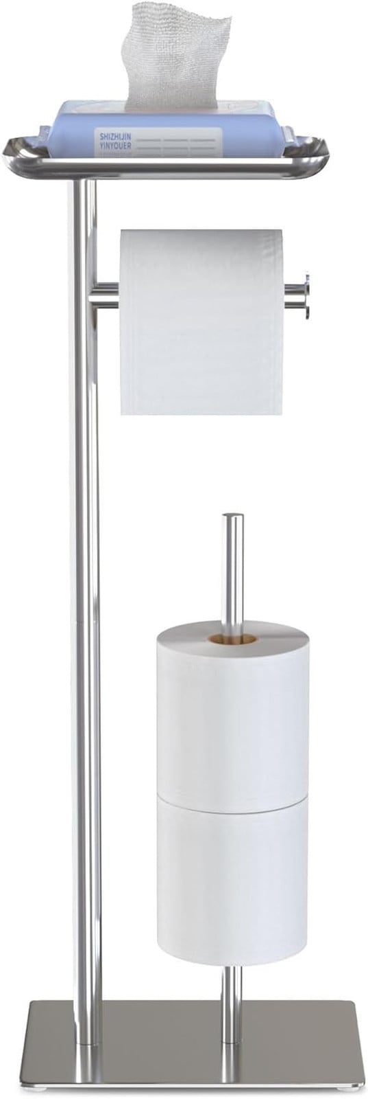 Toilet Roll Holder Silver Free-Standing Bathroom Toilet Paper Stand Reserve