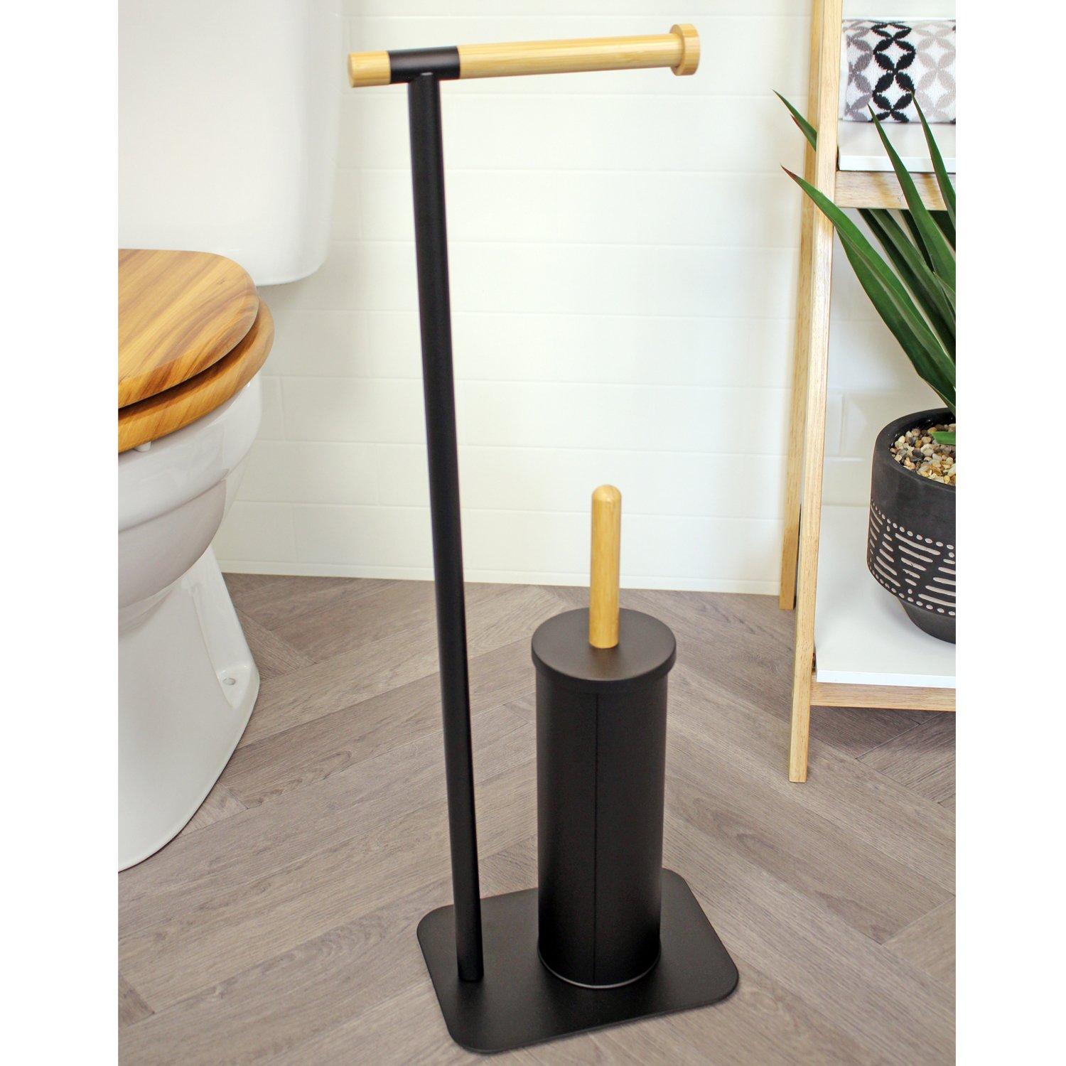 'Aspen' Black Toilet Roll Holder & Brush Combination Freestanding