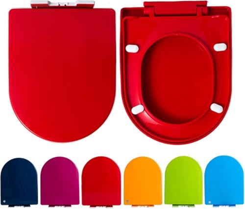 Modern Luxury Soft Close Toilet Seat D Shape Easy Clean Strong Hinges Red White Fits 44-48 cm Long x 35.5 cm Wide