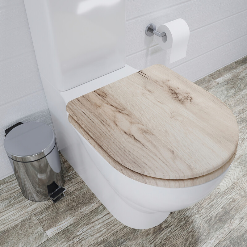 Croydex Flexi-Fix Wooden Toilet Seat Varese D Shape - Grey Oak