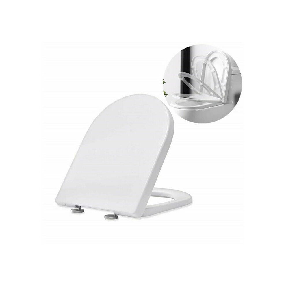 Soft Close Toilet Seat D-Shape White Bathroom Slim Top Fix Hinges Modern