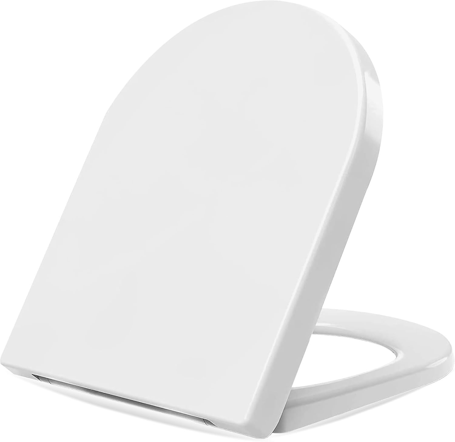 Toilet Seat, Modern D Shape Design for All Standard Bowls, Ergonomic Soft Close Feature Ensures Quiet Use, Stainless Steel Hinges for Durability, Heav