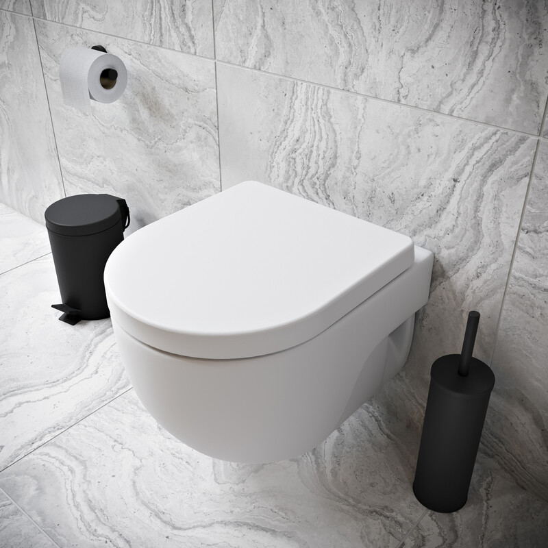 Soft Close Toilet Seat Black Slim D-Shape Bathroom Top Fix Hinges Modern