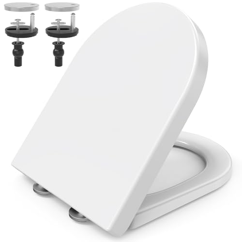 Toilet Seat Soft Close D Shape with Quick Release for Easy Clean, Universal Toilet Seat White with Adjustable Stainless Hinges, Durable Duroplast