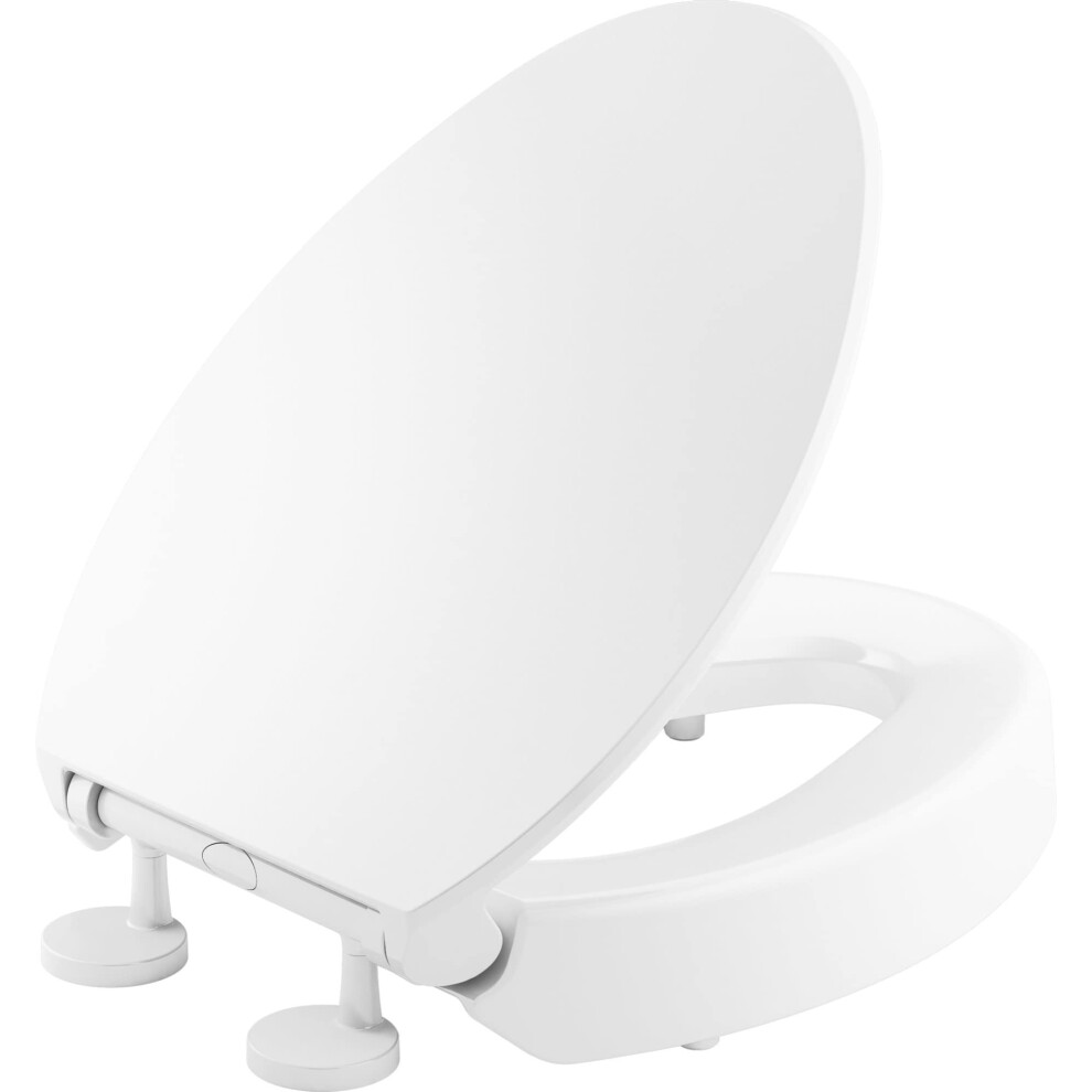 KOHLER 25875-0 Hyten Elevated Quiet-Close Elongated Toilet Seat Contoured Seat with Grip-Tight Bumpers Quick-Attach Hardware White