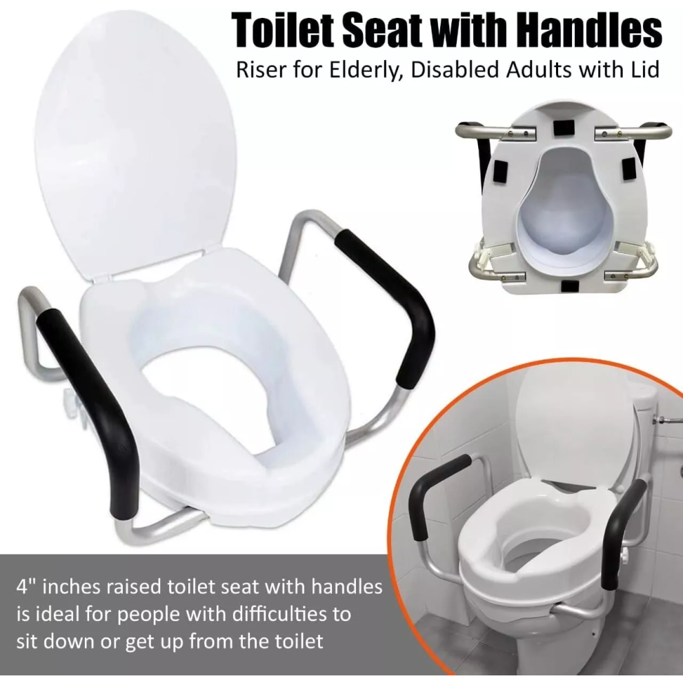 Ausla Medical Raised Toilet Seat with Support Handles, 10.2 cm Height, 150 kg Capacity, Elevated Seat with Lid for Elderly and Adults, 40 x 43.4 x 9.9 cm