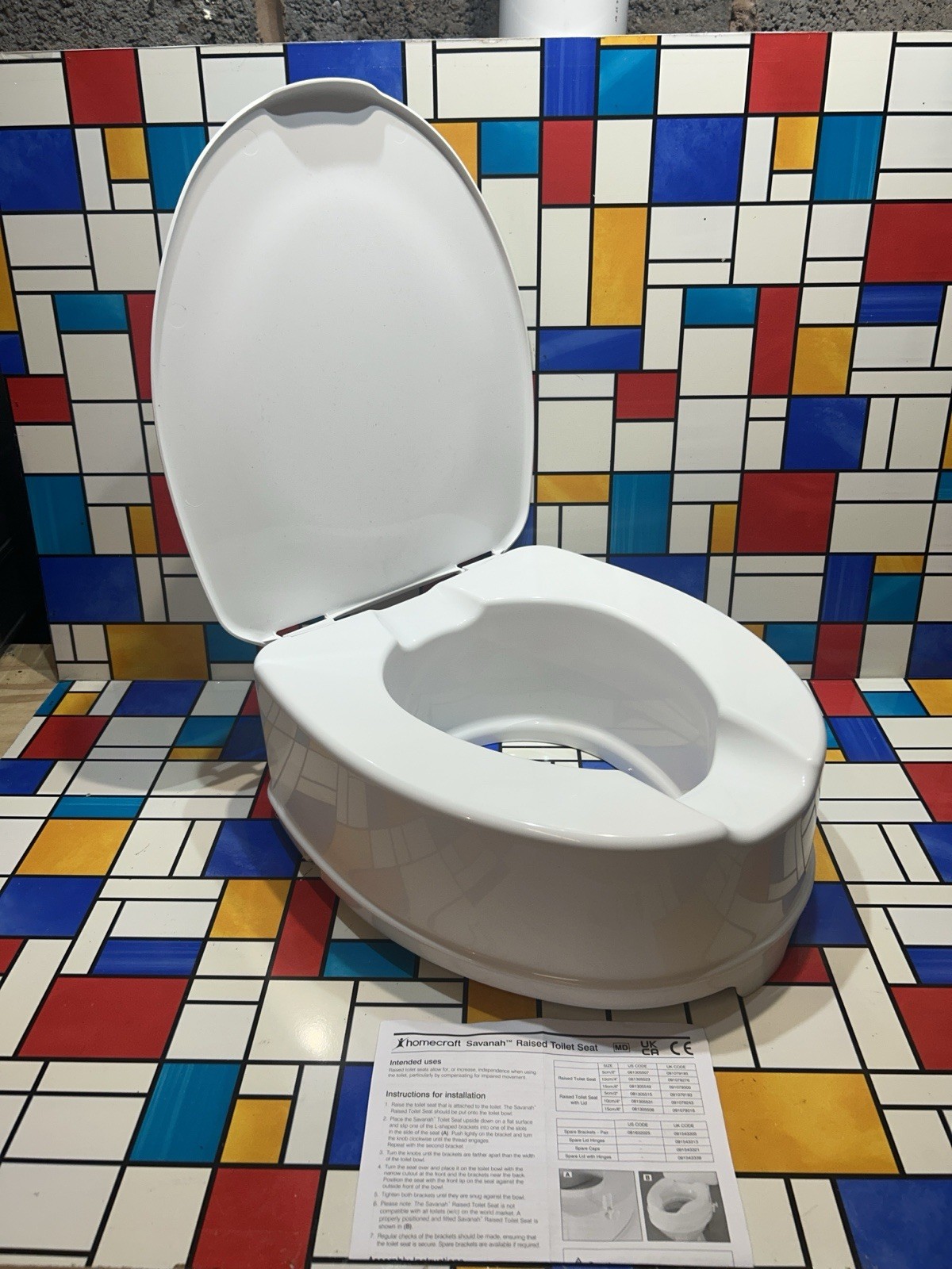 HOMECRAFT SAVANAH RAISED TOILET SEAT WITH LID 10CM 4" ELEVATED RAISER AID - NEW