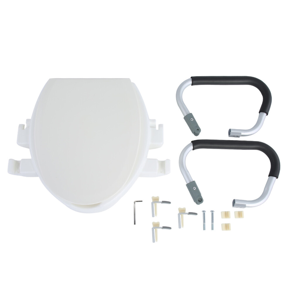 2 in 1 Elevated Toilet Seat Removable Arms Raised Disability Aid Universal