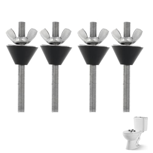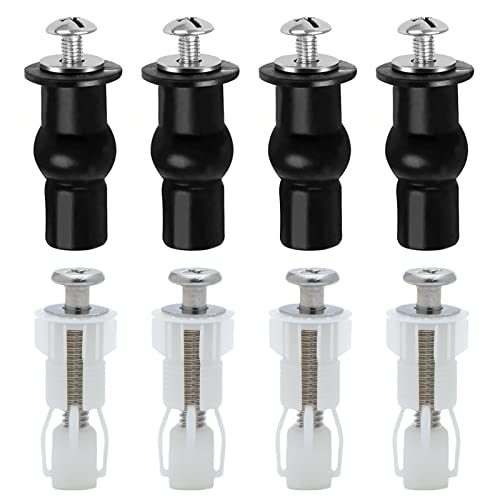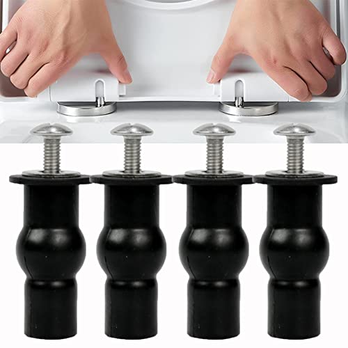 4 Pack Toilet Seat Screws Universal Toilet Lid Seat Hinges Bolts Toilet Seat Fittings Toilet Seat Hinges Expanding Rubber Top Nuts Screw Fixings WC Blind Hole Fittings, Black (LUOSIU-5)