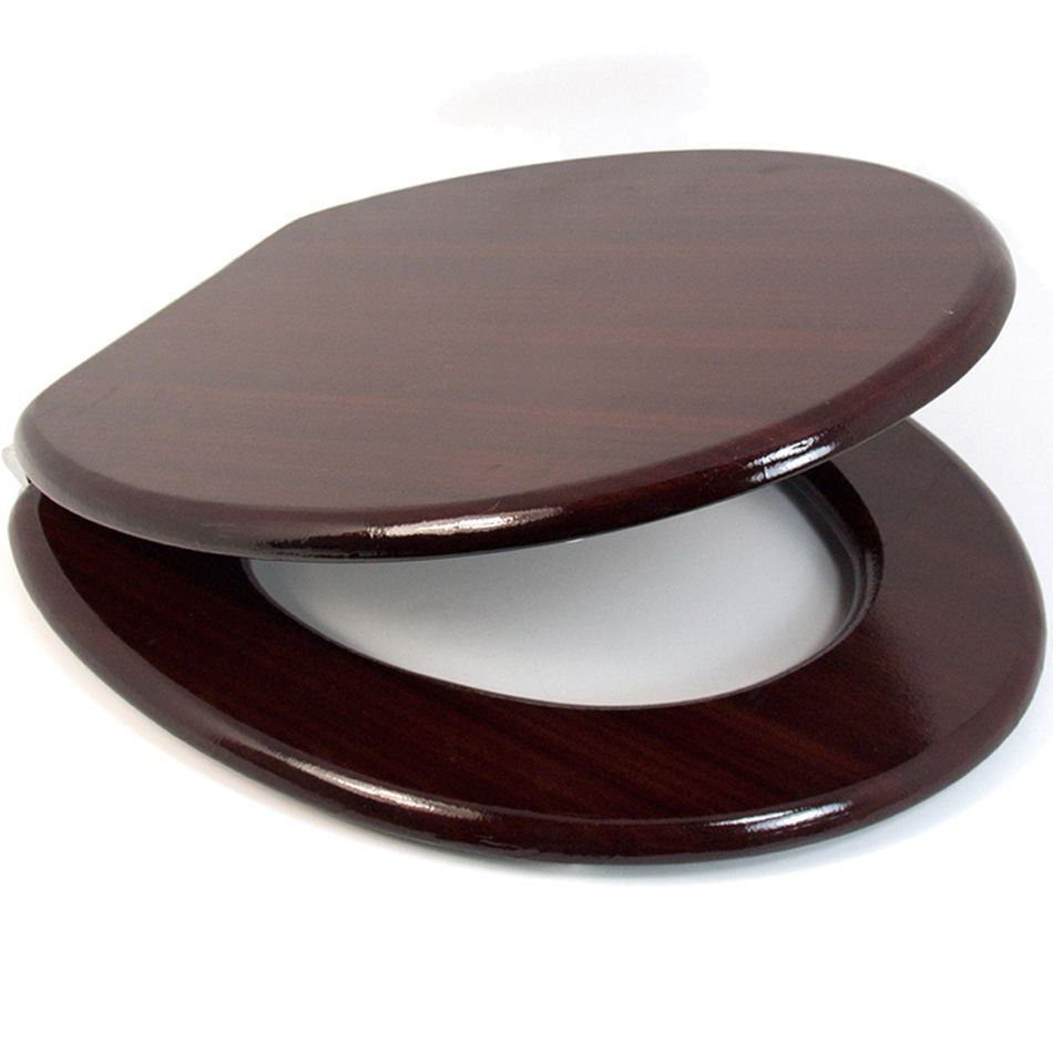 18" MAHOGANY MDF UNIVERSAL BATHROOM WC TOILET SEAT EASY FIT FITTINGS WOODEN W/C