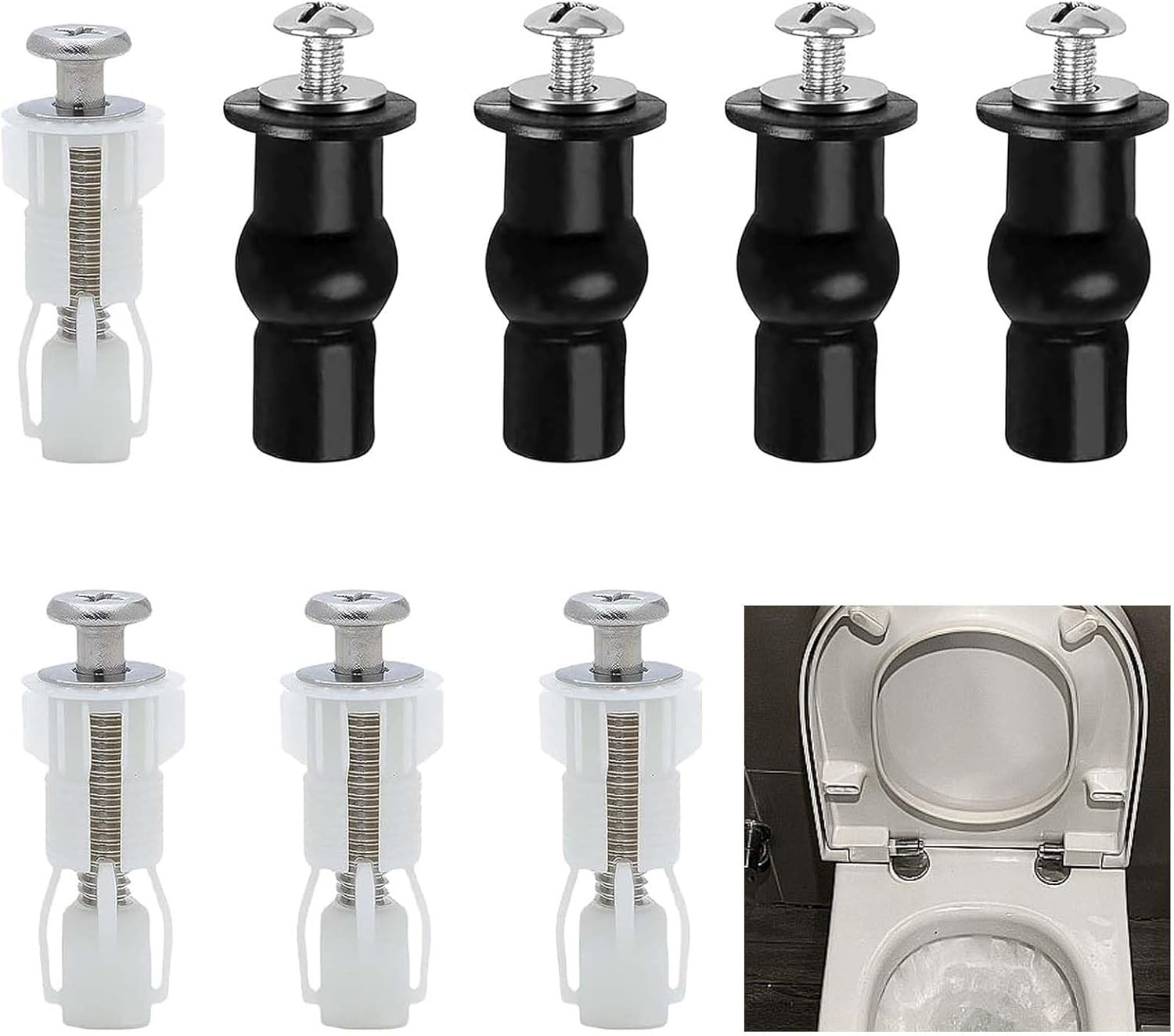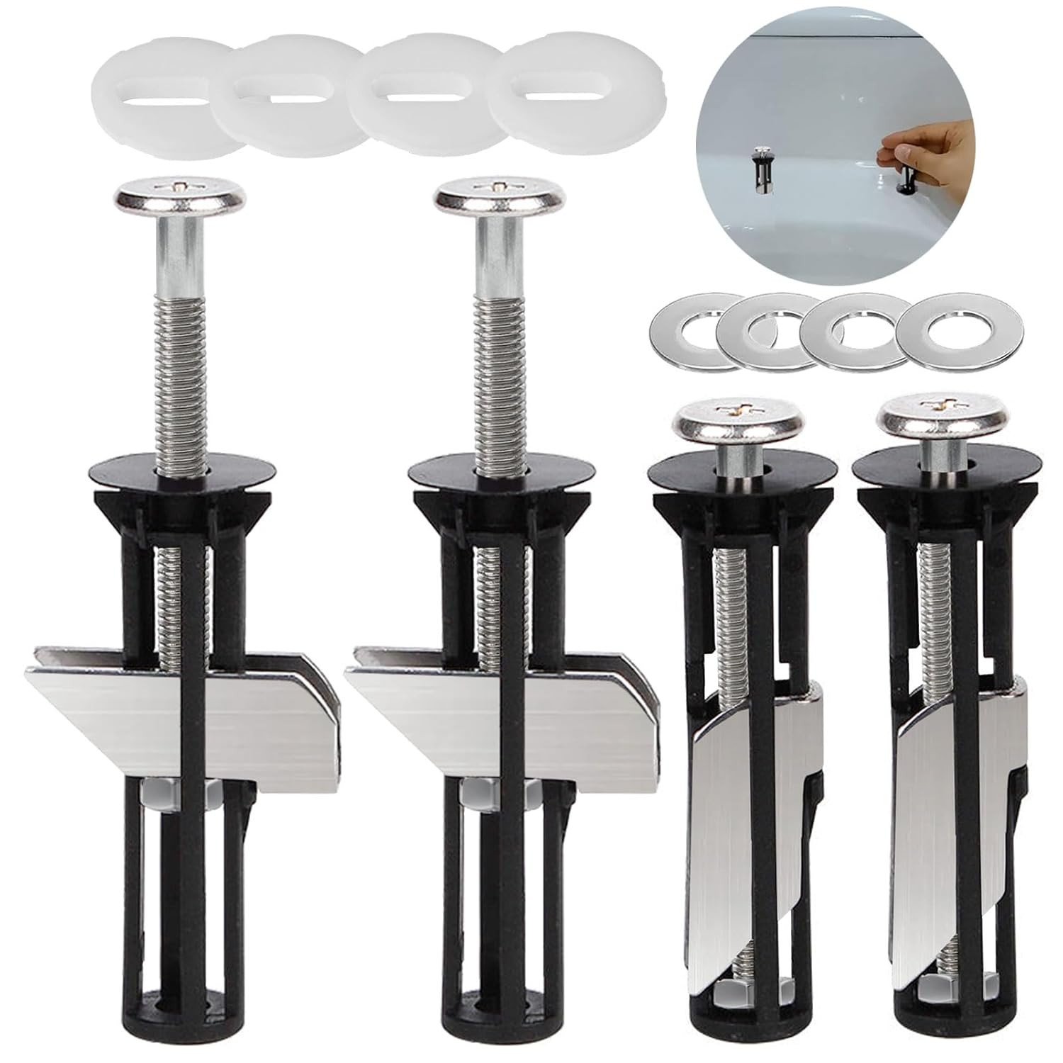 Toilet Seat Fittings, 4 Pcs Expansion Screws and Fixtures, Universal Toilet Lid