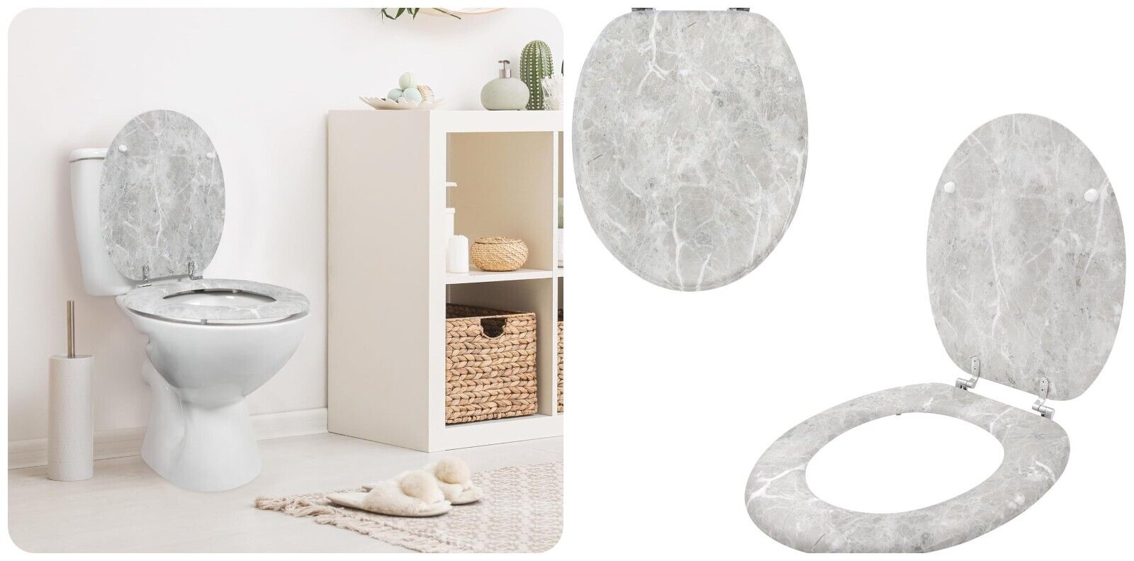 Toilet Seat Grey Marble Effect Chrome Hinges Standard Toilet Seat With Fittings