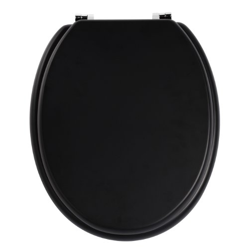 Universal 18" Black MDF Bathroom WC Toilet Seat With Fittings Adjustable Hinges