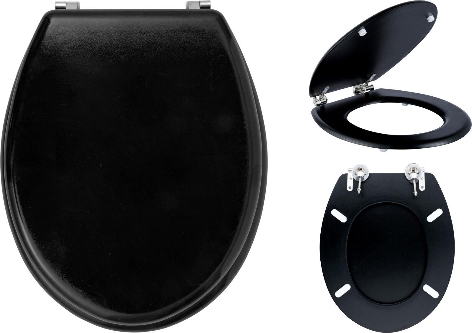 18" BLACK MDF UNIVERSAL BATHROOM WC TOILET SEAT WITH FITTINGS ADJUSTABLE HINGES